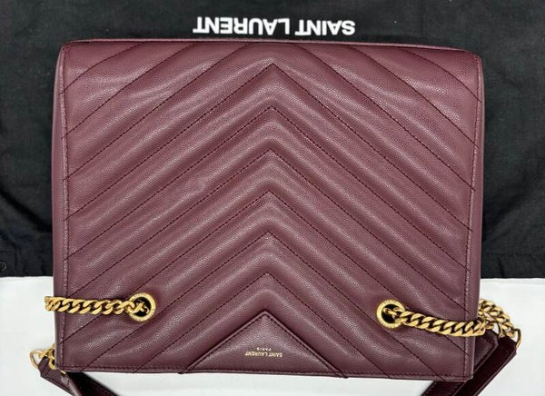 YSL Saint Laurent Tribeca S Shoulder Bag in Burgundy Leather